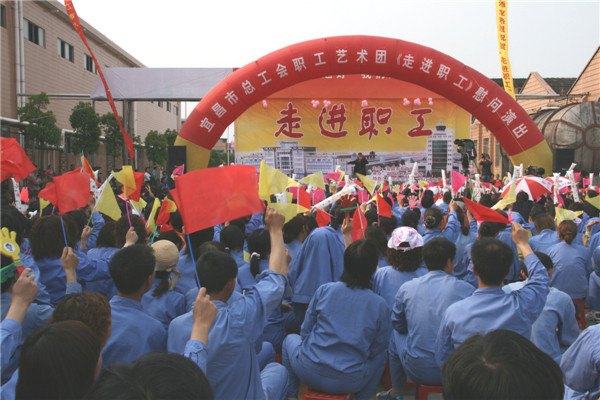 4月27日,宜昌市總工會職工藝術(shù)團(tuán)帶著全市40萬職工的深情厚意,帶著各級工會組織的親切關(guān)懷,走進(jìn)枝江酒業(yè)的廠區(qū)內(nèi),為枝江酒業(yè)全體員工慰問…