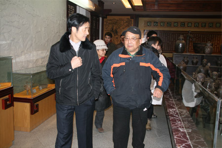 參觀枝江酒業(yè)展廳 2月13日,謙泰吉槽坊創(chuàng)始人張?jiān)暮笠釓埰鹂吕先寺首訉O到枝江酒業(yè)參觀。今年已81歲高齡的張起柯老人現(xiàn)居上海,系張?jiān)?/a>