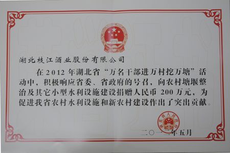 5月22日,黨委書記張華代表枝江酒業(yè)出席了在武漢召開的全省萬名干部進(jìn)萬村挖萬塘總結(jié)表彰會(huì)。省委書記李鴻忠出席會(huì)議并講話,省委副書記、省…