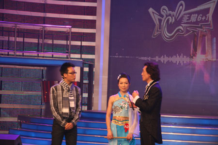 舞臺(tái)上的張翠華、李玉剛和李詠 3月21日晚,枝江酒業(yè)員工張翠華順利通過(guò)央視“非常6+1”節(jié)目的現(xiàn)場(chǎng)錄制,于22日下午回到枝江。在公司同…