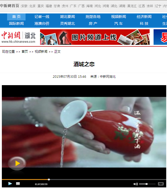 7月30日,中新網(wǎng)湖北新聞力推《酒城之戀》MV視頻。由枝江酒業(yè)聯(lián)合武漢世紀(jì)藝人文化傳播有限公司拍攝的歌曲《酒城之戀》視頻7月27日正式由騰訊…
