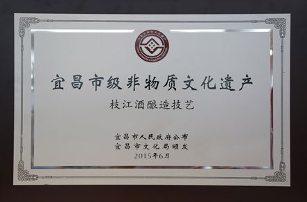 6月29日,枝江市文化體育旅游局局長李建庭一行為枝江酒業(yè)送來了宜昌市人民政府、宜昌市文化局頒發(fā)的“宜昌市級非物質(zhì)文化遺產(chǎn)”牌匾,枝江酒釀造技藝成為宜昌市級非物質(zhì)文化遺產(chǎn)。非物質(zhì)文化遺產(chǎn)是世代相承,與群眾生活密切相關(guān)的文化表現(xiàn)形式,既是歷史發(fā)展的見證,又是珍貴的、具有重要價值的文化資源。枝江酒的釀造技藝從晚清時期的謙泰吉槽坊開始,已歷經(jīng)六代傳人。保護(hù)和利用好這筆非物質(zhì)文化遺產(chǎn),對于踐行科學(xué)發(fā)展觀,傳承優(yōu)秀民族文化遺產(chǎn)具有重要意義。“枝江酒”2006年獲得中國地理標(biāo)志產(chǎn)品,2011年“枝江”注冊商標(biāo)被商務(wù)部認(rèn)定為“中華老字號”,對釀造技藝的傳承與保護(hù)一直是枝江酒業(yè)在踐行的發(fā)展觀。枝江酒業(yè)本著“保護(hù)為主、搶救第一、合理利用、傳承發(fā)展”的工作方針,將原始的釀造工具較完整地保留下來,成為見證釀造歷史的實物。