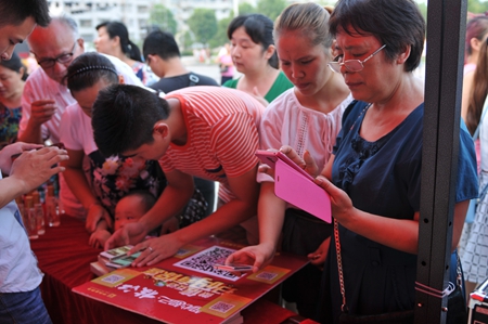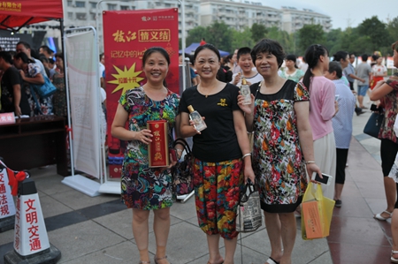 8月13日傍晚時(shí)分,枝江酒業(yè)為家鄉(xiāng)人民傾力打造的微信掃碼贈(zèng)酒體驗(yàn)活動(dòng)仍在繼續(xù)。經(jīng)過三天形式多樣的活動(dòng)體驗(yàn),通過參與市民的口口相傳,這天的活動(dòng)現(xiàn)場還迎來了幾位特殊的參與者,他們是周邊市場的分公司經(jīng)理及經(jīng)銷商老板。松滋分公司經(jīng)理陳偉說,看到枝江酒業(yè)官方微信上如此火爆的活動(dòng)現(xiàn)場,公安代理商鄭老板表示一定要過來學(xué)習(xí)學(xué)習(xí)。為了回饋廣大市民不斷高漲的熱情以及對枝江酒業(yè)長期以來的支持與關(guān)注,這天的掃碼獎(jiǎng)品中還特意增加了口碑極好的“十五年經(jīng)典”作為活動(dòng)的大獎(jiǎng)。另外,活動(dòng)展臺(tái)上還展出了枝江酒業(yè)美文集《枝江酒·時(shí)光韻》供市民隨時(shí)閱讀與分享,受到了廣大文學(xué)愛好者的青睞,短短幾分鐘,工作人員準(zhǔn)備的一整箱50本書就被一搶而空。這也是繼《酒城之戀》受到廣場舞愛好者熱捧以來,枝江酒業(yè)再一次在酒城文化上得到市民的充分肯定。這個(gè)夏天,枝江酒,演繹了枝江人不一樣的傍晚醉!