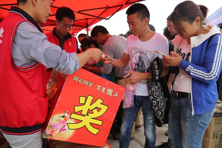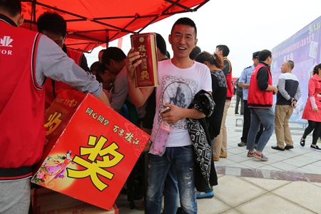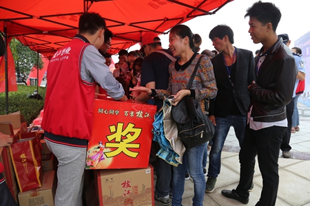 枝江酒業(yè)借用這樣的熱鬧場(chǎng)面,在相親活動(dòng)現(xiàn)場(chǎng)進(jìn)行微信掃碼贈(zèng)酒活動(dòng),吸引了前來參加相親活動(dòng)的各階層人士。在現(xiàn)場(chǎng)展示的產(chǎn)品有枝江王、百年枝江韻系列產(chǎn)品、情義結(jié)、謙泰吉1號(hào)、苦蕎酒等。參與者只要現(xiàn)場(chǎng)關(guān)注枝江酒業(yè)微信公眾號(hào),分享到朋友圈,即可獲得一次抽獎(jiǎng)的機(jī)會(huì),分別會(huì)抽出“十五年經(jīng)典”、“枝江情義結(jié)”、“小金版枝江王”、“小苦蕎酒”等不同價(jià)位的枝江酒。枝江酒業(yè)曾經(jīng)在今年夏天,利用枝江市納涼晚會(huì)舉行微信掃碼贈(zèng)酒活動(dòng),與枝江市民有效互動(dòng),讓枝江人“家家抱得美酒歸”成為酒城風(fēng)景,而在此次相親節(jié)上,在“千年等一回”的浪漫中,“相親抱得美酒歸”又一次成為枝江這座中國(guó)白酒名城的風(fēng)景。枝江市婦聯(lián)準(zhǔn)備了豐富的文藝節(jié)目,在舞臺(tái)的大屏幕上,重復(fù)播放著枝江酒業(yè)出品的《酒城之戀》畫面,有一位現(xiàn)在枝江工作的外地小伙子說,希望能在枝江收獲一段像《酒城之戀》中的愛情故事。