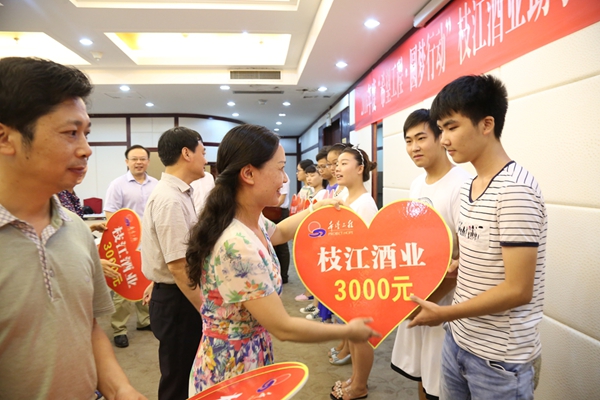 8月25日, 2016年度“希望工程?圓夢行動”枝江酒業(yè)助學金發(fā)放暨“希望家園”結(jié)班儀式在枝江國際大酒店隆重舉行。該項活動由共青團枝江市委和枝江酒業(yè)共同舉辦。